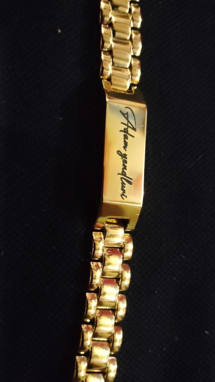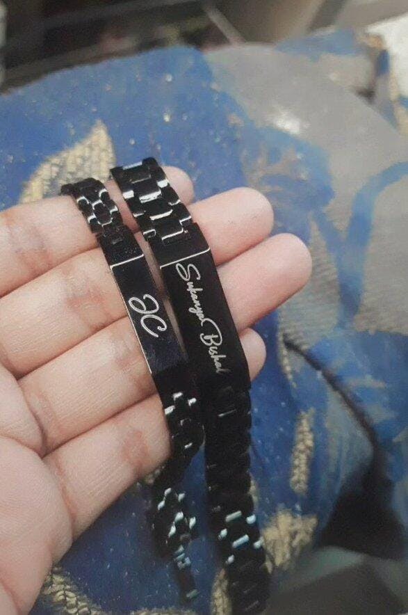 Our customised jewelry is crafted using durable Stainless Steel/Brass as base metal plated brilliantly with 24K Gold/Silver/Black Plating and features an extra protective layer to prevent scratches and maintains its luster over time. 😊