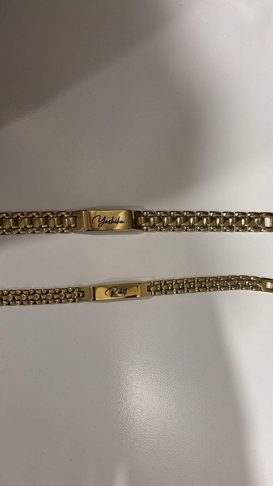 - 1 Pair Bracelet With Name Engraved on it in a 2 Separate Boxes.