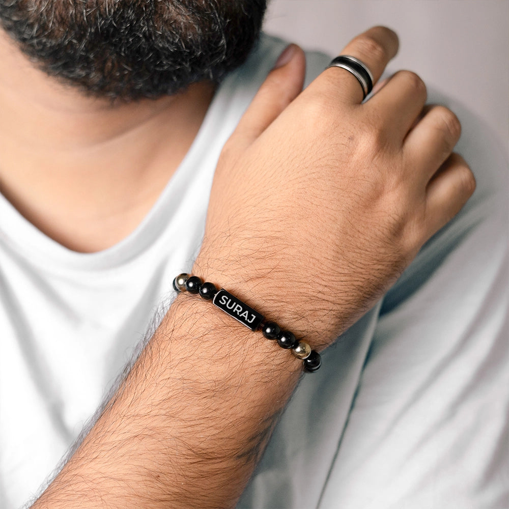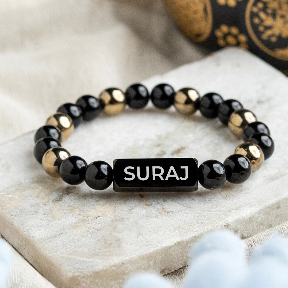 Personalized Black Onyx & Goldstone Bracelet | Lab Certified & Certified | Unisex