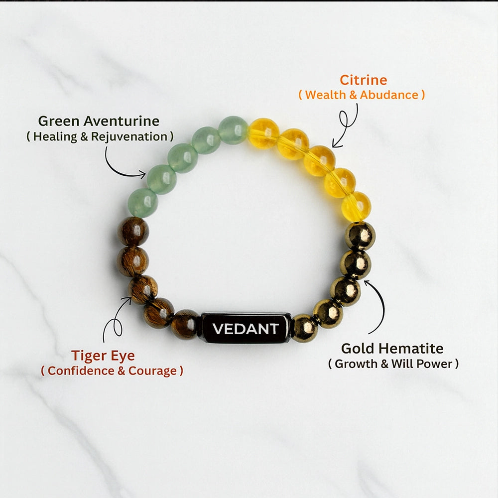 Step into the energy of prosperity with the Dhan Yog Bracelet, a sacred fusion of natural gemstones known to attract wealth, success, and abundance. Each bead is carefully selected for its vibrational power — boosting confidence, clearing emotional blockages, and aligning your energy with financial growth and stability.